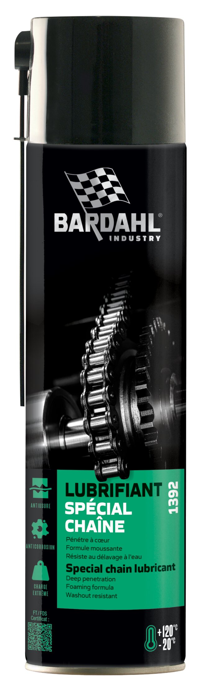 • Lubrifiant pour chaînes. Evite l'agglomération de poussières.